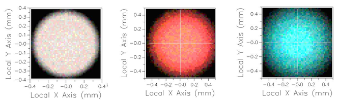 圖4.準直白光束(左),透射光束(中)和反射光束(右)的彩色圖像