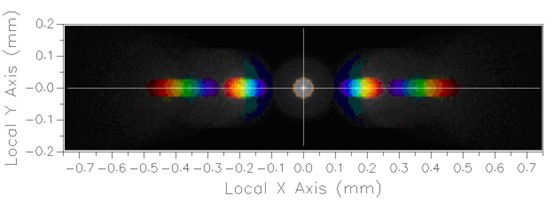 寬光譜光源對許多光學系統都很重要,應用范圍包括白光照明、分光計等。FRED中的顏色圖像分析,是通過計算每個像素的色度坐標并在表面上顯示生成的RGB值來生成顏色分布。此外,FRED還可以顯示彩色色度圖,并在用戶移動光標時指示每個像素的色度坐標。在本案例中,將觀察兩個光學系統的彩色圖像。第一個系統包括一個分色的“冷光鏡”,將白光分為兩個波長段。第二個系統利用線偏振器和波片來顯示雙折射材料的波長依賴性。