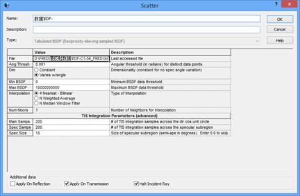 4、 數(shù)據(jù)輸入后,可點(diǎn)擊“Plot”按鈕驗(yàn)證BSDF模型及總的散射值