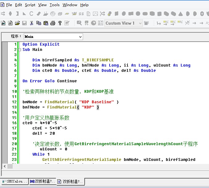 目前,F(xiàn)RED溫度敏感性的評(píng)價(jià)可使用腳本語言實(shí)現(xiàn)。本文演示了一個(gè)雙折射材料的折射率隨溫度變化而變化腳本。