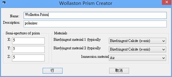 圖3. 沃拉斯頓棱鏡創(chuàng)建對話框