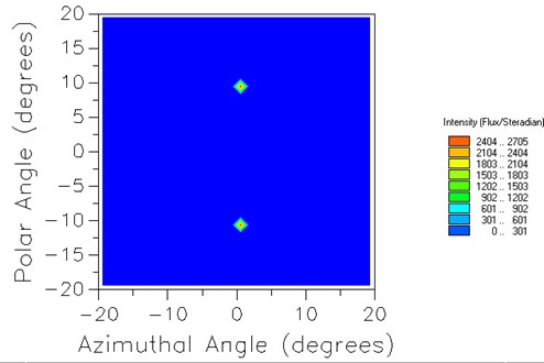 FRED文件.frd包含了兩個沃拉斯頓棱鏡模型,由沃拉斯頓棱鏡生成器腳本產(chǎn)生。它們都還含有使用布爾復合元件創(chuàng)建的粗糙的模型。為了分析該棱鏡,我們定義了多偏振和非偏振光源。除了常規(guī)的分析表面,我們也定義了一個定向分析表面。它可以用來運行“Intensity on Polar Grid”分析,來測量正交偏振光束之間的角間距。