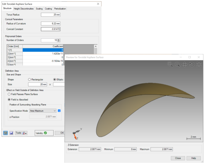 我們實現了以下新的曲面類型:Anamorphic非球面,Q-Type非球面和Toroidal非球面。也可從Zemax導入相應的面型。