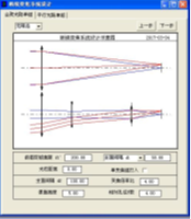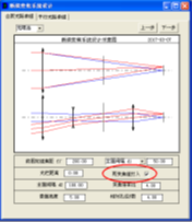 設計時在界面上填寫相關設計要求以及各組元之間主面間隔,程序會自動求解打入部分各組元焦距值以及其他外形尺寸數據,繪制結構示意圖。圖中上半部分是打入前的原物鏡結構,下半部分為打入后的系統結構。接著執行“下一步”程序顯示系統各組元焦距值、通光孔徑以及各組元間主面間隔數據。