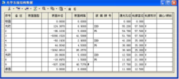 圖7.會聚光路中打入式自動設計結構系統數據表