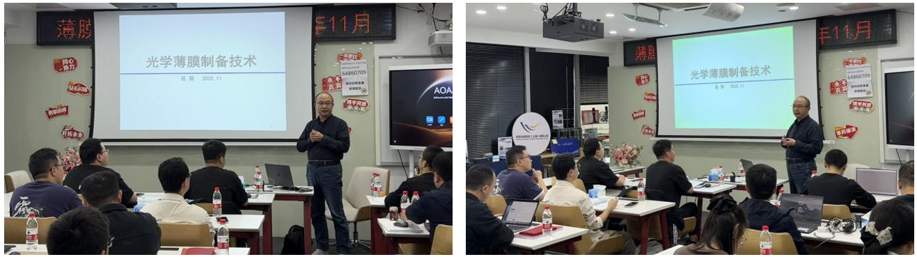 值得一提的是,我們也很榮幸邀請到上海光學精密機械研究所的易葵研究員,為學員們帶來了關于光學薄膜制備工藝、激光薄膜關鍵技術及光學薄膜測量方法等領域的權威分享與前沿洞見。他的講解生動詳實,緊扣行業發展趨勢,引發了學員們的廣泛思考和積極提問。