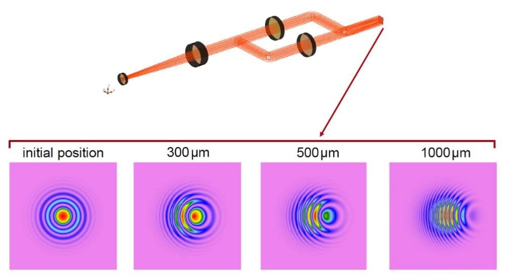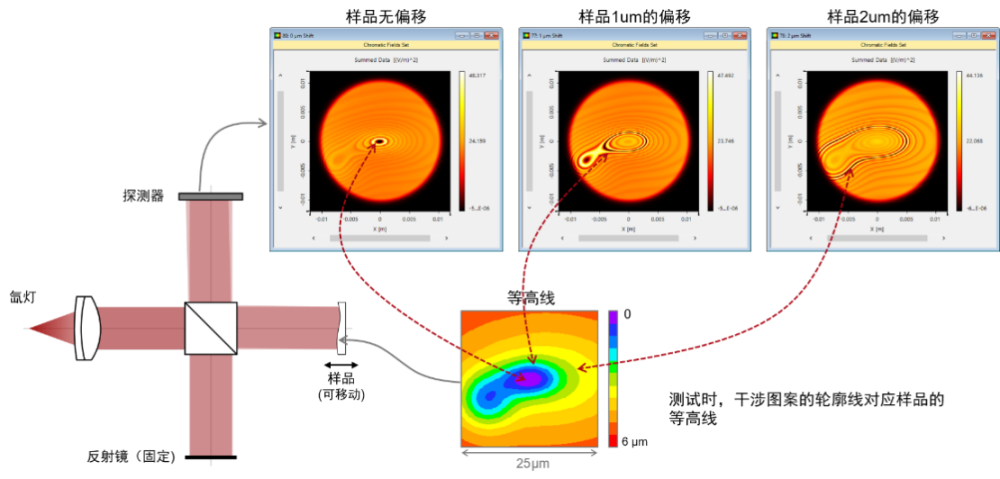干涉系統(tǒng)光線(xiàn)追跡示意圖以及干涉圖樣展示