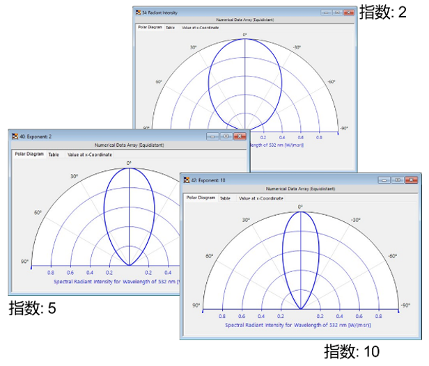 • 可自定義的指數讓您能夠模擬從廣泛的朗伯式到狹窄的高度定向發射曲線等各種發射模式。