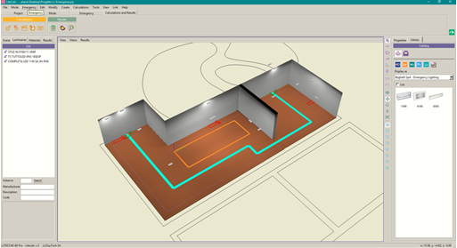 根據(jù)用戶通過相應對話框定義的照明參數(shù)集(僅適用于Emergency Plus版本),自動為不同區(qū)域選擇光源的位置。 該程序會自動檢查所達到的照度水平,并在不一致的情況下建議自動添加燈具,直到達到預期水平