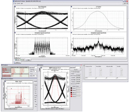 用戶可使用高級可視化工具生成OSA光譜,信號啁啾,可視化視圖,偏振態,星座圖等。同樣包含了WDM分析工具,如信號功率列表,增益,噪聲圖以及每個通道的OSNR。