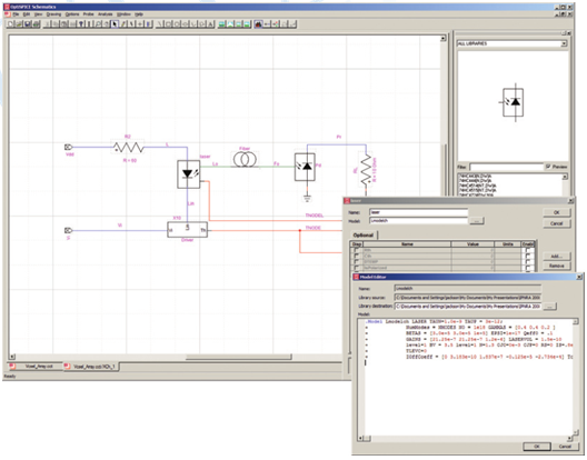 提供了一整套穩態和動態的光學放大器模型,包含了高級摻雜光學模型(Er,Er多模,Er-Yb,Yb,Yb多模,Tm,Pr)以用于精細的物理光纖放大器設計;EDFA和EDFA黑盒子(增益光譜,噪聲圖測量)以用于WDM網絡系統設計;動態和平均拉曼模型;1D/2D半導體光放大器模型(lumped rate equation,行波,TLMM)。電域放大器同樣用于接收器的設計(跨阻抗,自動增益控制和限幅放大器應用)。