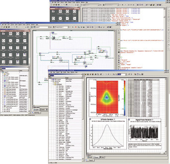 可視化和后模擬分析工具包含BER測試系列和分析器,可視化視圖分析器,光譜分析器,功率分析器,示波器,光時域預覽器,功率器,偏振分析器,空間觀察儀,環形通量,DMD分析器,所有的光參數分析器,濾波分析器和S參數提取器。