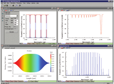 光纖光柵和平面波導光柵的設計。應用之一是各類溫度壓力光柵傳感器。擁有強大的逆解析模塊。