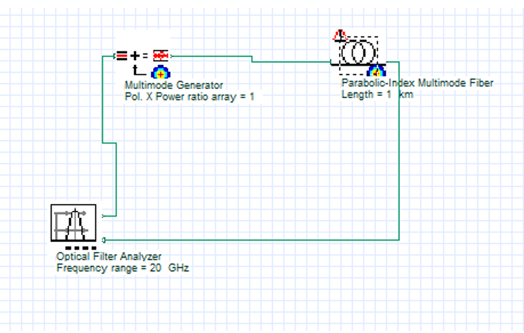 在“Default/Optical Fibers/Multimode”中,將“Parabolic-Index Multimode Fiber”拖放到布局中。