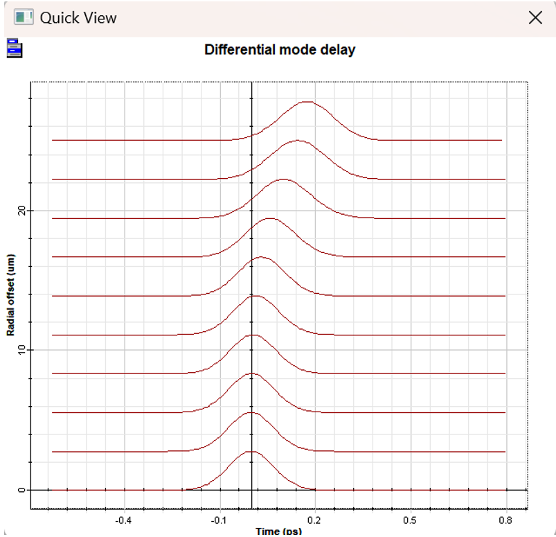 下圖是“Differential mode delay”圖(圖3),它顯示了光纖輸出脈沖的時間-徑向演化。