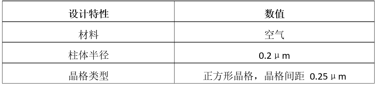 晶格和空氣孔單元的特性如下表所示: