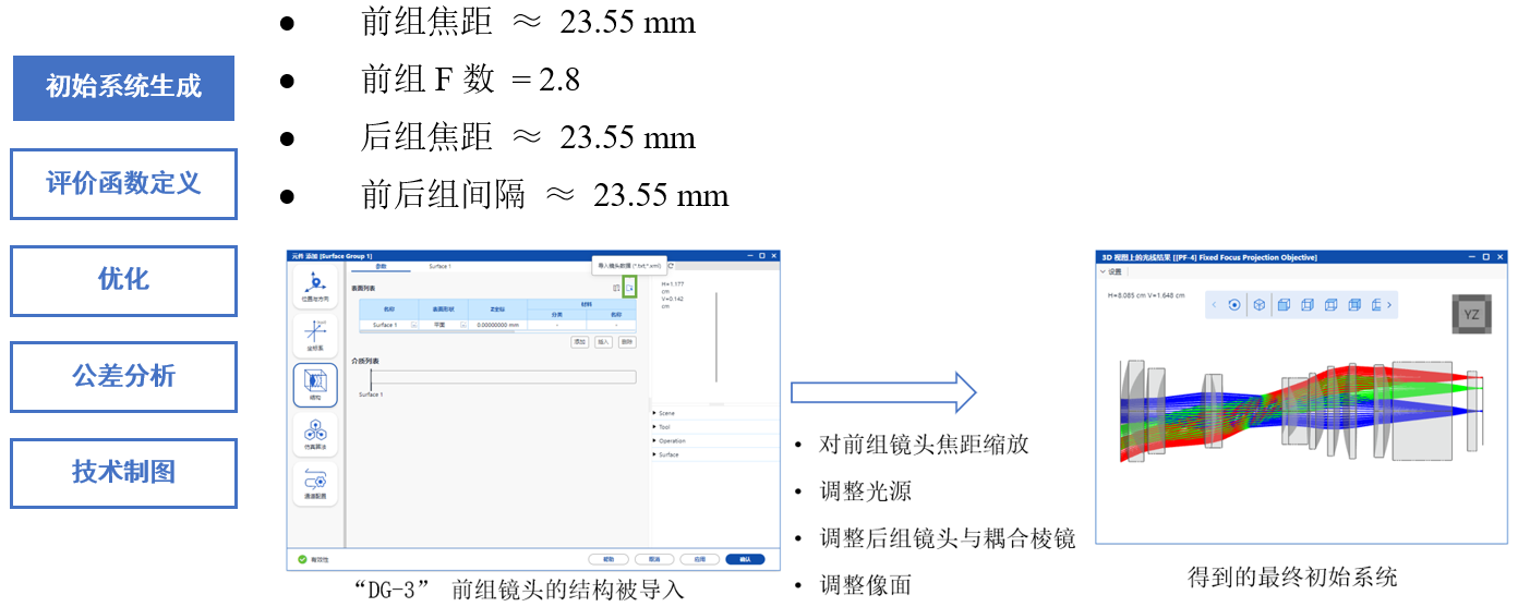 根據案例說明,初始系統的前組鏡頭和后組鏡頭應具備以下原則:
