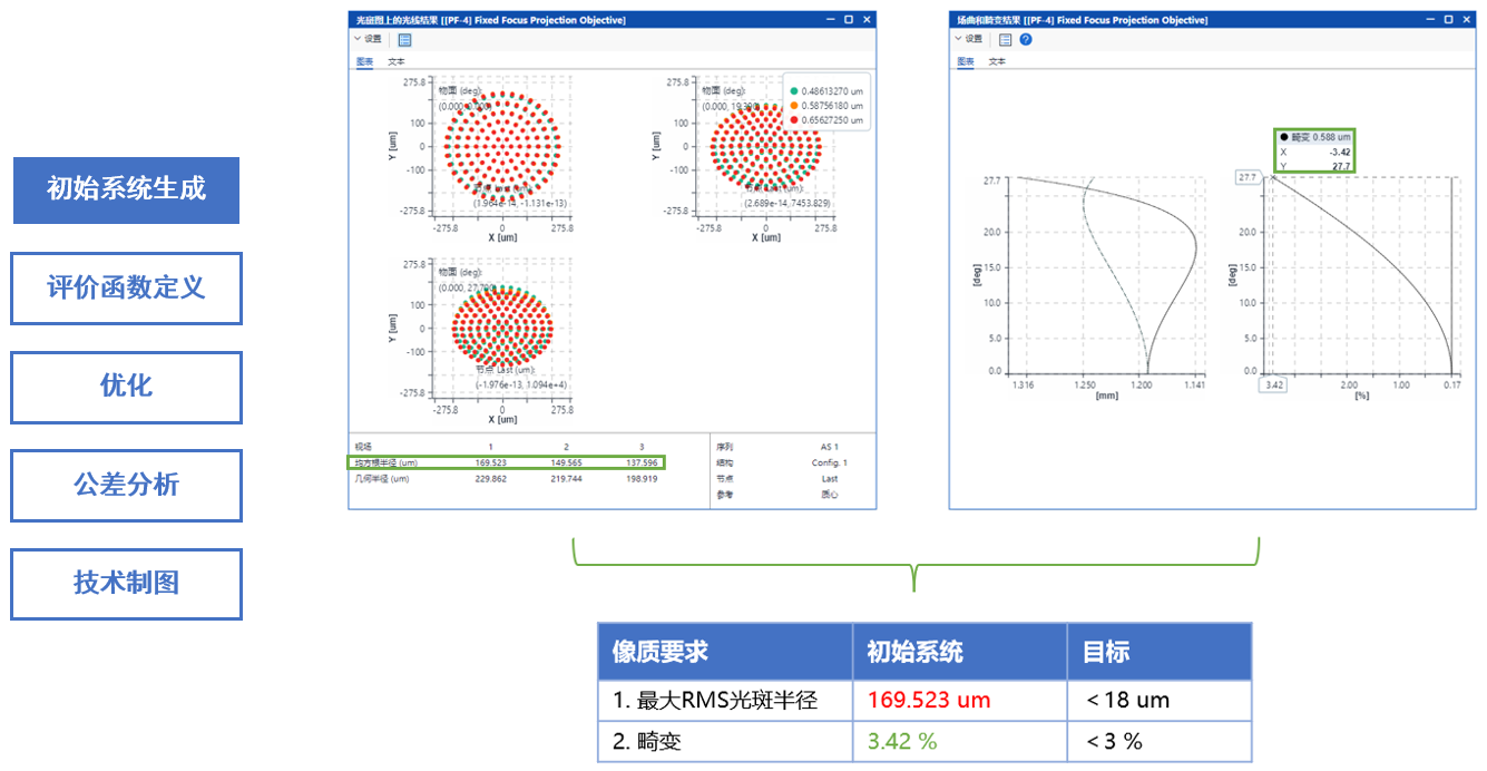 通過采用PSD算法進行優化后,滿足了像質要求 1-2、系統規格 2-4、額外系統限制1-2以及加工要求 3-4。