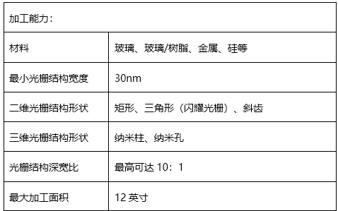 目前,我們除了可以提供各種常用的衍射光柵標準產品之外,還可以提供客戶化的定制加工服務。特別是可以實現納米級的斜齒光柵和三角形的閃耀光柵的加工。