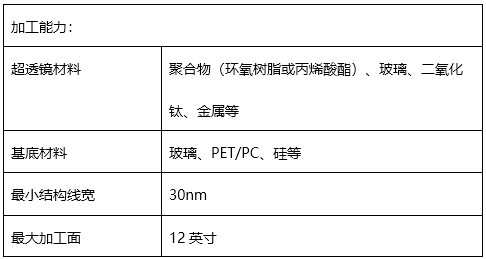 對于MetaLens以及MetaGrating,我們采用了納米壓印技術,結合沉積、刻蝕等半導體工藝技術,可以實現低成本大面積的超透鏡結構加工。
