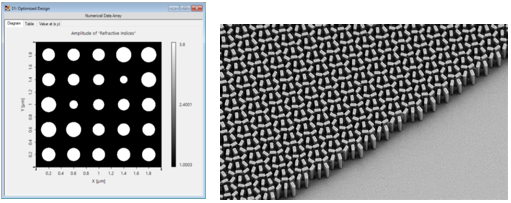 左圖:基于VirtualLab Fusion設計的2D MetaGrating   右圖:按照一定方向進行排布的MetaLens結構