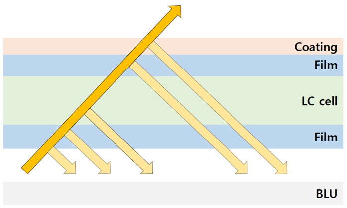 TechWiz軟件可以考慮顯示面板每層的多次反射來計算表面反射,之前我們曾介紹過關于外部光源的反射,本例將介紹關于底部(即從背光源一側發出)的光源的反射的計算