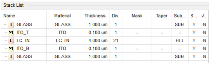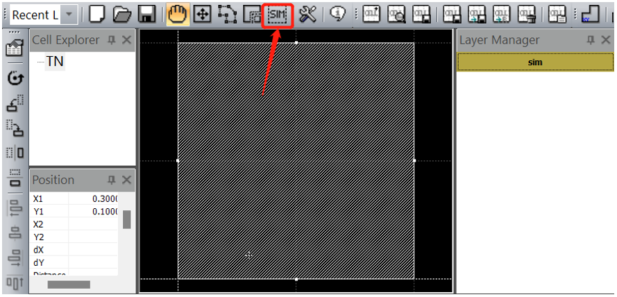 2.1由于此案例結構是上下電極的簡單結構,在TechWiz Layout中僅設置模擬區域即可,在SIM中搭建堆棧結構