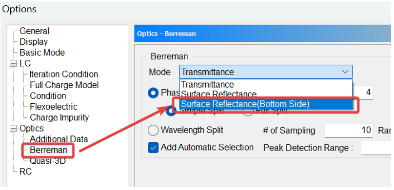 使用Surface Reflectance(Bottom Side)功能,同樣考慮了面板各層的多次反射,用戶可以計算BLU方向的反射。(用戶無需反向結構的情況下計算底部反射)