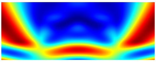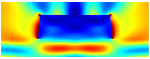 光柵被斜入射S和P偏振平面波照亮。JCMsuite計算近場分布。下圖顯示了當(dāng)波長為193nm時,平面波從襯底側(cè)垂直入射到結(jié)構(gòu)內(nèi)的近場強度