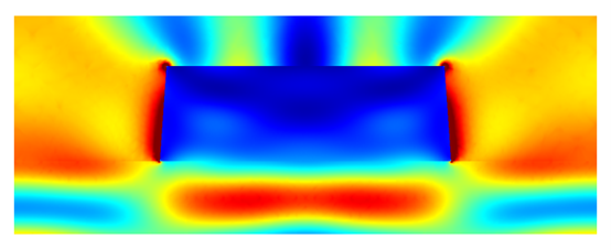 光柵被S和P偏振平面波照亮。JCMsuite計算近場分布。下圖顯示了當波長為193nm時,平面波從襯底側垂直入射到結構內的近場強度。