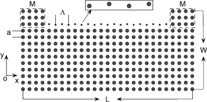 □ 采用周期陣列,創建光子晶體。將部分元胞刪除,形成表面腔。