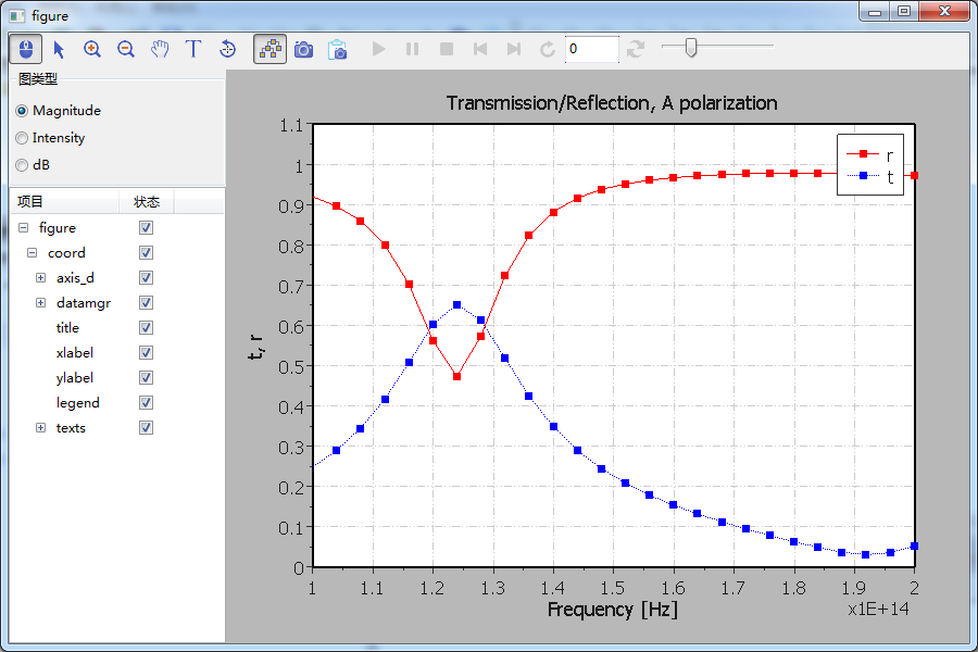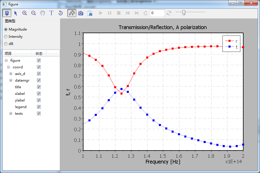 本案例使用“自動計算透反率模式”研究石墨烯和特異介質(zhì)的相互作用,分析透反率在有無石墨烯存在情況下的變化。光源處于近紅外波段。