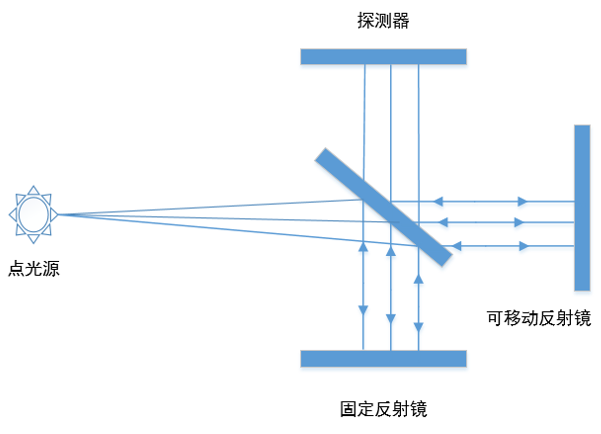 邁克爾遜干涉儀是光學干涉儀中最常見的一種,其原理是一束入射光分為兩束后各自被對應(yīng)的平面鏡反射回來,這兩束光從而能夠發(fā)生干涉。干涉中兩束光的不同光程可以通過調(diào)節(jié)干涉臂長度來實現(xiàn),從而能夠形成不同的干涉圖樣。