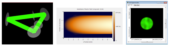 一個有效的光學建模要求將所有這些類型的元件和光源放在一個軟件平臺上進行高精度且快速的仿真模擬。VirtualLab Fusion是在VirtualLab場追跡模擬引擎的基礎上,新增了功能強大的幾何場追跡模擬引擎。經典場追跡模擬引擎統一了從幾何光學到電磁場方法的各種建模技術。在光學模擬與設計中包含了衍射、干涉、部分相干、像差、偏振等各種物理效應,從而能夠高精度的進行光學模擬與設計。而幾何場追跡模擬引擎則是通過使用幾何光學的方法來近似求解麥克斯韋方程組,從而能夠快速的完成各種復雜光學系統的模擬仿真,同時在模擬過程中包含了除衍射外的各種物理效應。經典場追跡模擬引擎與幾何場追跡模擬引擎的聯合使用,既能夠保證光學系統模擬和設計的精度,又能夠保證其速度,是物理光學和幾何光學的完美結合。最后,其傳統的光線追跡模擬引擎能夠快速的完成光學系統的性能評估。(下圖:光線追跡、幾何場追跡、經典場追跡)
