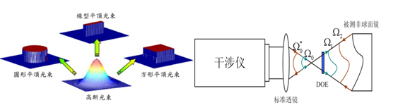圖1. (a)二元光學元件用于光束整形     (b)二元光學元件用于復雜曲面干涉檢測