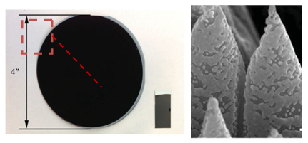 圖4. 黑硅實物圖及其局部電鏡掃描圖